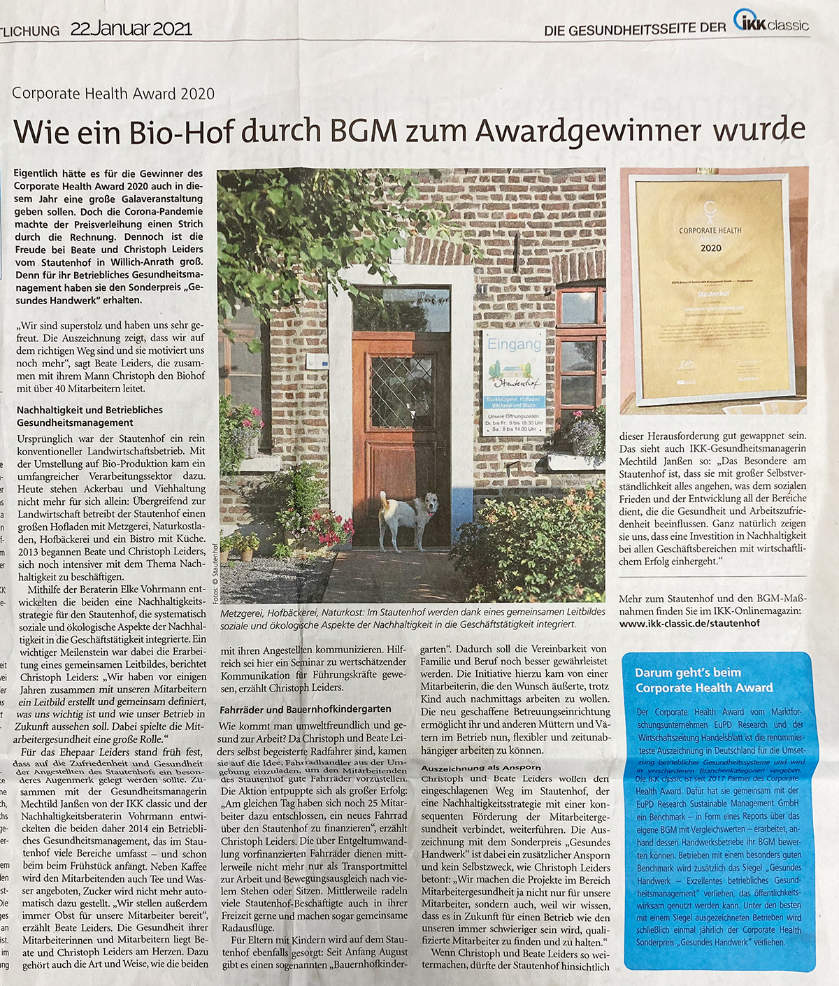 Nachstehend finden Sie einige Medienberichte über den Stautenhof.